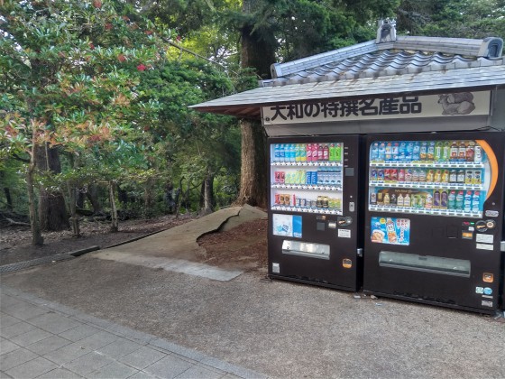 若草山の駐車場まで戻り、手持ちの水分が無くなったら自動販売機で給水します。