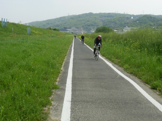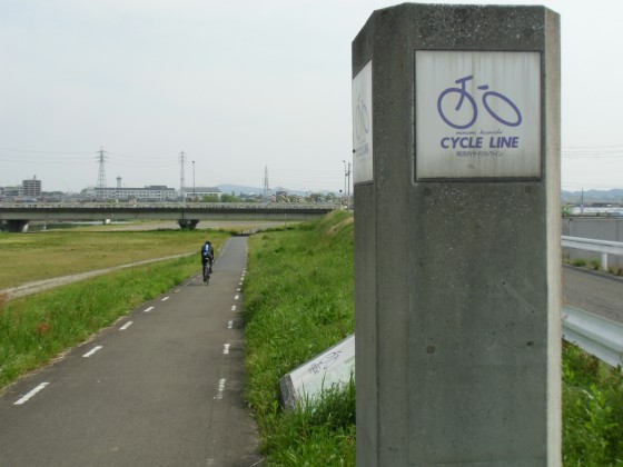 ここは大阪府八尾市から河内長野市まで、一級河川の大和川と支流の石川の河川敷を走るサイクリングロードで、約21㎞あります。