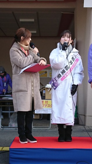 10:00~のナンバーカード引換の前に、オープニングイベントとして、今年も奈良県出身の松井絵里奈さんにお越しいただきました
